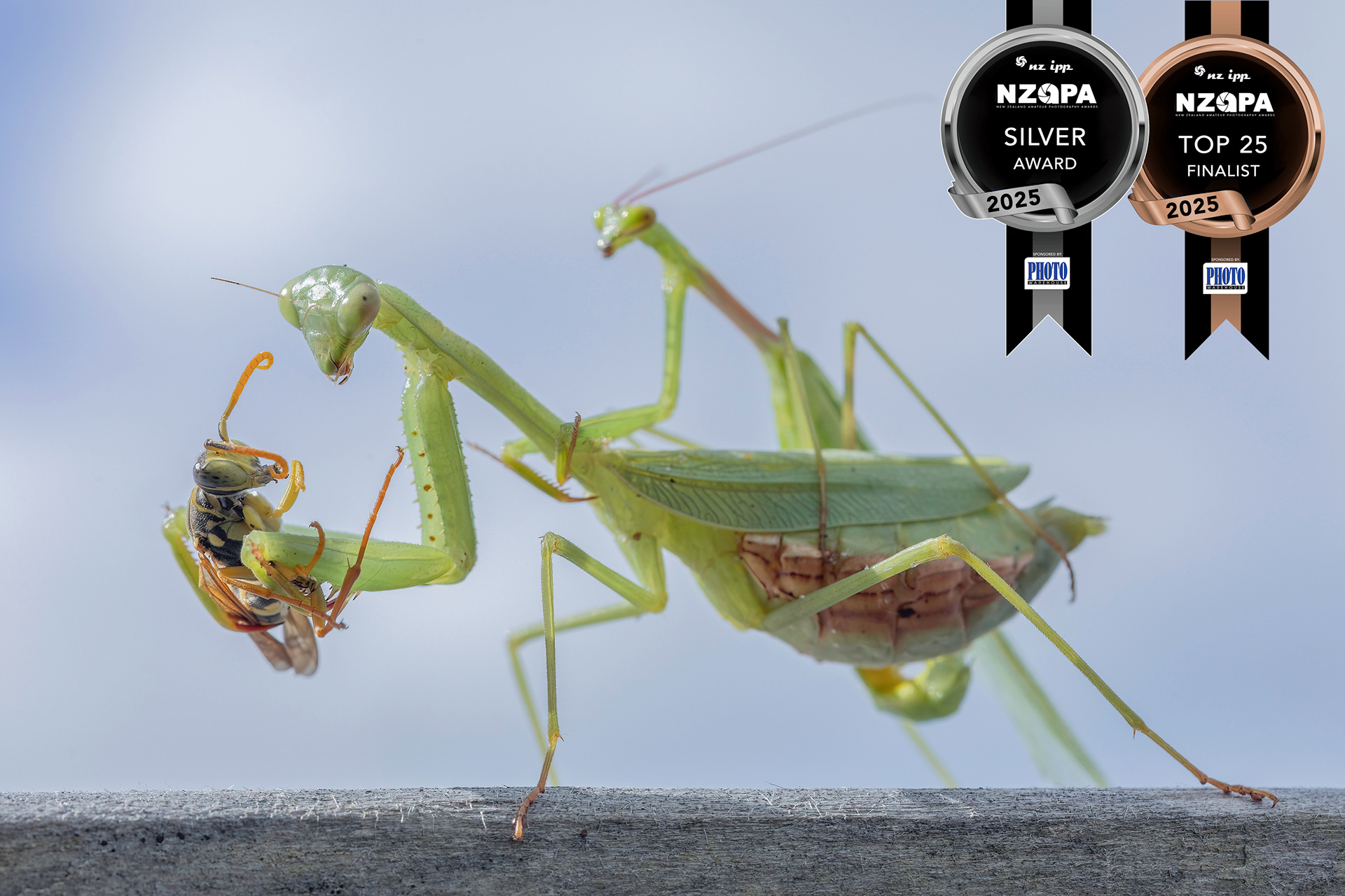 South African Mantis (Miomantis caffra) eating Asian Paper Wasp (Polistes chinensis) copy